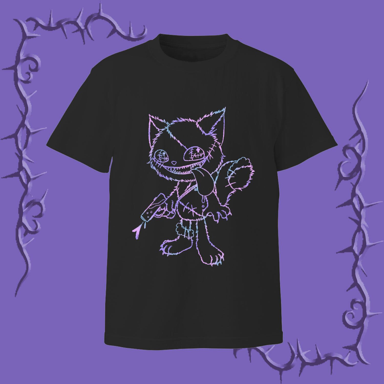 ダーキュン(ダークの中にキュンと刺さるような可愛らしさのある)な猫のぬいぐるみのイラストをプリントしたビッグTシャツです。